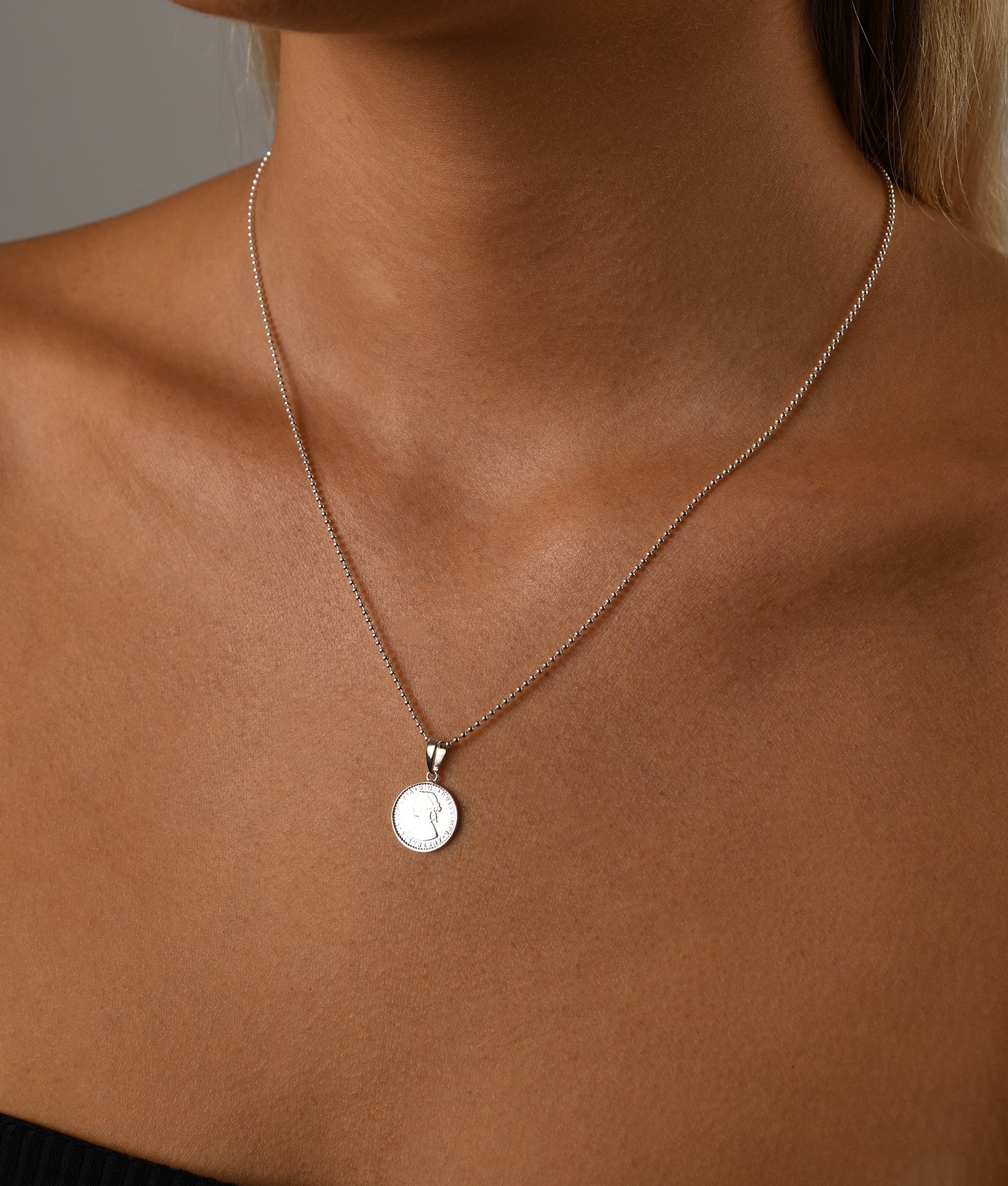 Fine ball chain necklace with mini coin