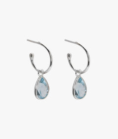 Extra fine box chain necklace with pear shaped natural blue topaz.