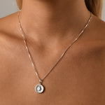 Fine box chain necklace with small round Saint Christopher medal. Saint Christopher is best known as the patron saint of travel. The medal is worn for protection during your travels.