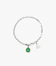 Fine clip chain necklace with round chrysoprase. Chrysoprase is known for its calming & soothing properties. Each stone is carefully selected for its lush green colour.