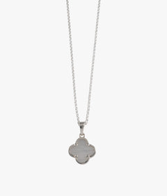 A petite clover carved in glowing mother of pearl is set at the centre of this elegant ring. Romantic and radiant with soft sculptural appeal.