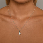 Fine ball chain necklace with pear shaped Czelline Opal charm. Watch the hues and colours of Czelline Opal change as light flickers off its smooth surface.