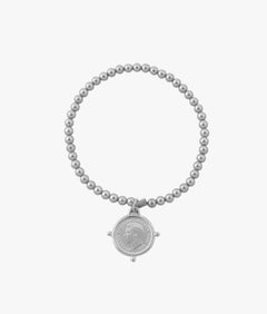 The Rosario chain is a rosary bead inspired chain. The beaded detail along its length brings more attention to this delicate necklace, which includes an authentic Australian threepence. The coin is encased in a sterling silver compass style frame.
