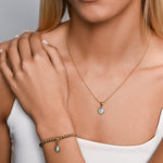 Effortless and refined. This fine ball-chain necklace is finished with a small round Larimar pendant - a rare Caribbean gemstone formed in volcanic rock, known for its serene ocean-blue hues and natural marbling.