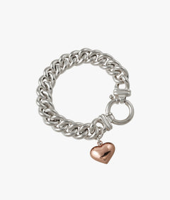 Two Tone Curb Necklace with Puffy Heart